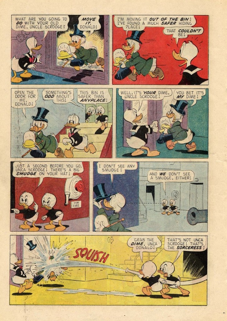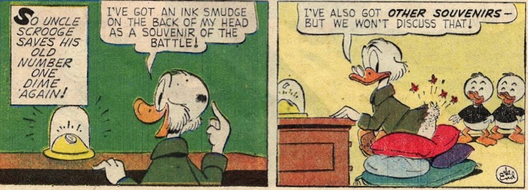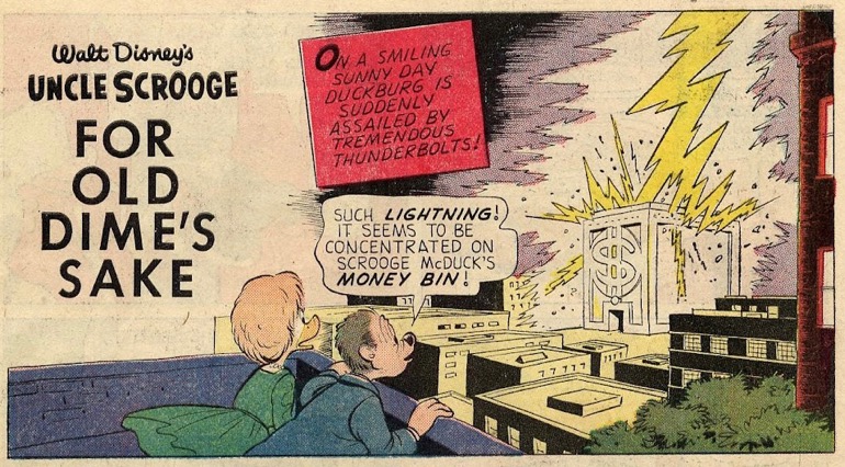 “For Old Dime’s Sake” was first published in the US within the book, Uncle Scrooge 43 in April of 1963. The story was created on July 16, 1962. “For Old Dime’s Sake” is 18 pages long.