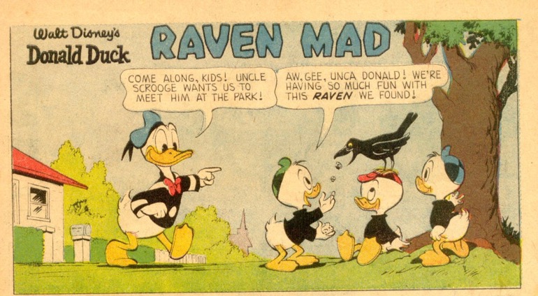 “Raven Mad” was first published in the US within the book, Walt Disney’s Comics & Stories 265 in October of 1962. The story was created on February 17, 1962. “Raven Mad” is 10 pages long.
