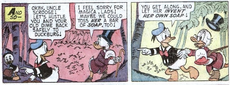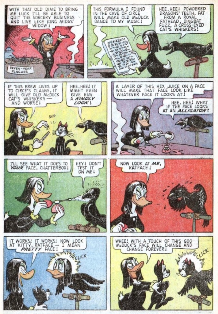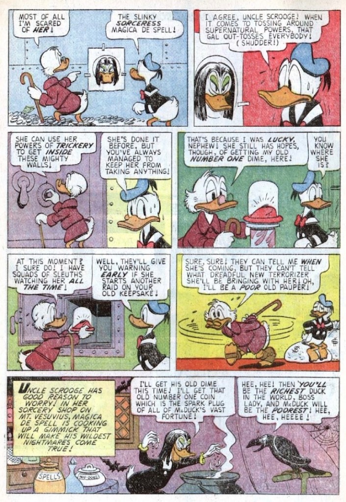 “The Many Faces of Magica de Spell” was first published in the US within the book, Uncle Scrooge 48 in January of 1964. The story was created on October 5, 1963. “The Many Faces of Magica de Spell” is 22 pages long.