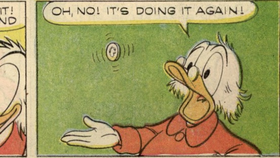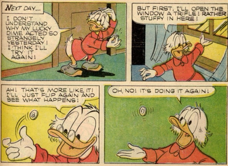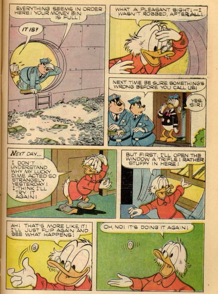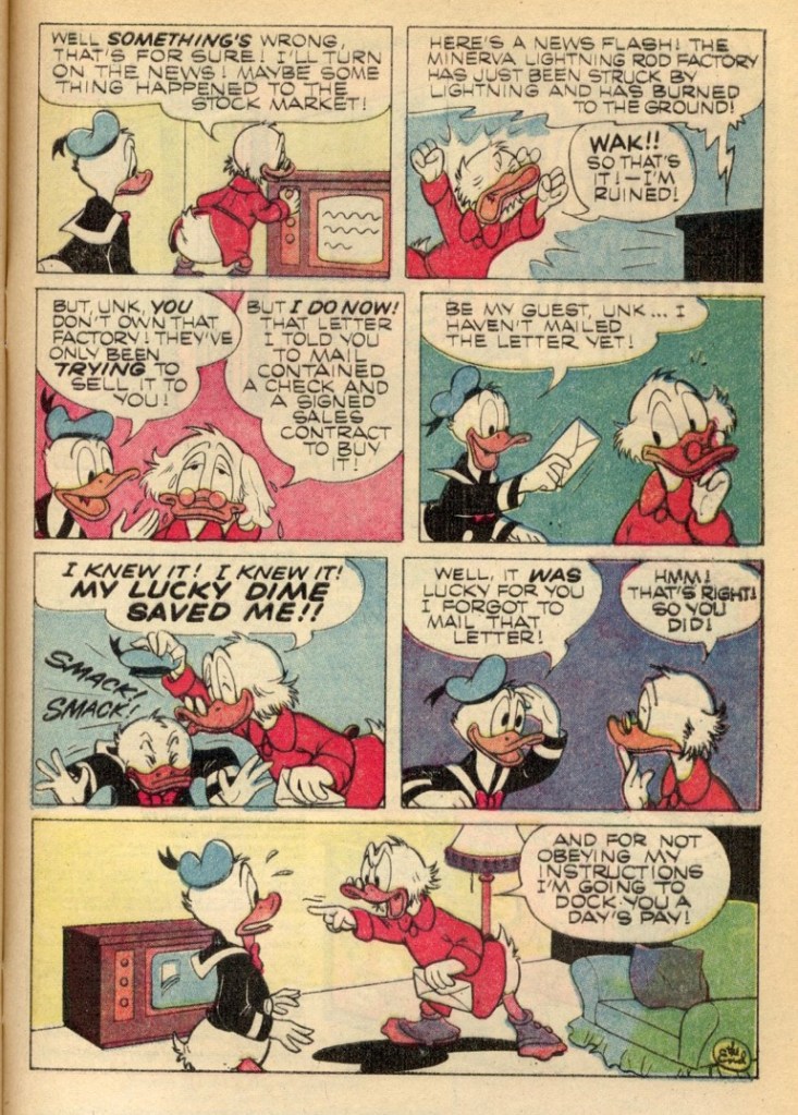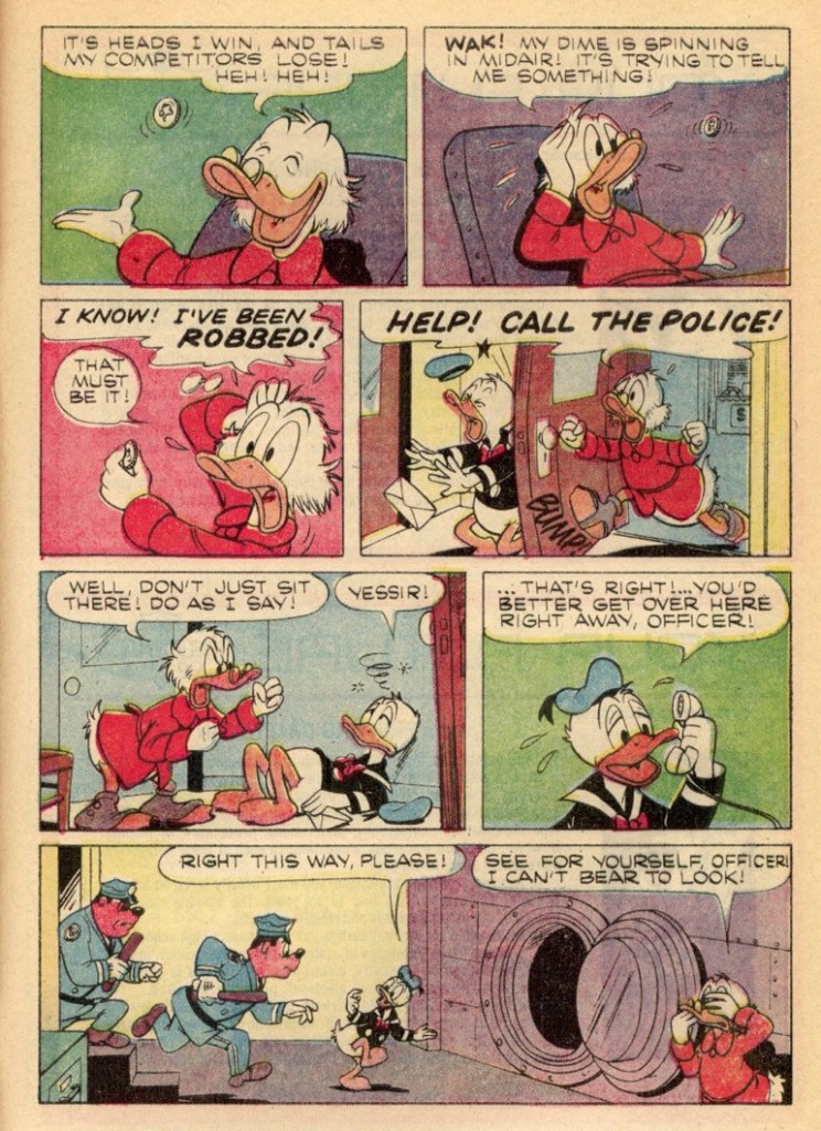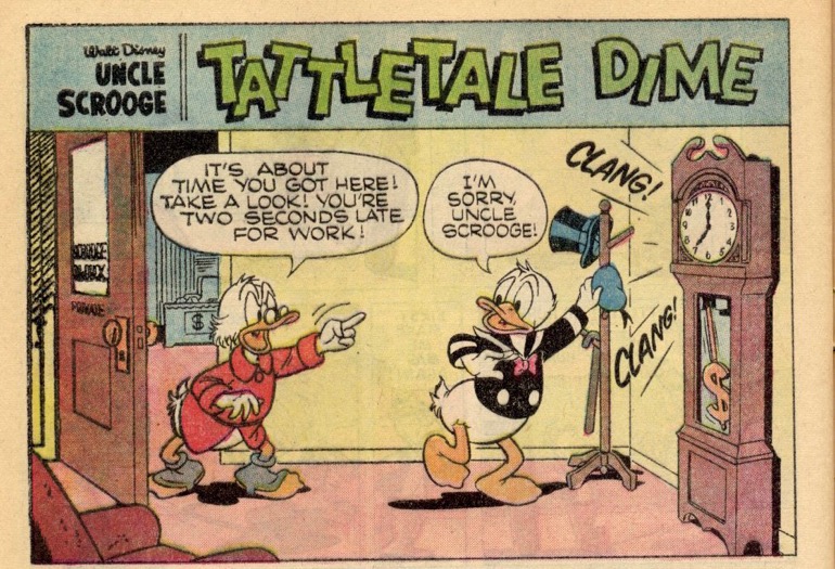 “Tattletale Dime” was first published in the US within, Uncle Scrooge 92 on February 11, 1971. “Tattletale Dime” is 5 pages long.