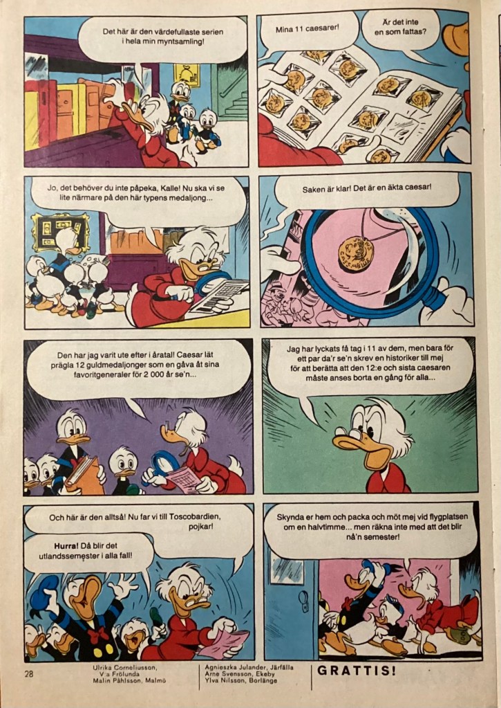 Below are images from the first release of “The 12th Caesarius, part 1” from Kalle Anka & C:o. 50 (Dec 1982).