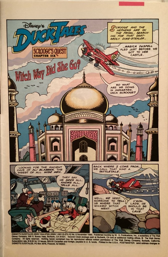 “Witch Way Did She Go?” was first published in the US within the book, DuckTales 6 in November of 1990. “Witch Way Did She Go?” is 26 pages long.