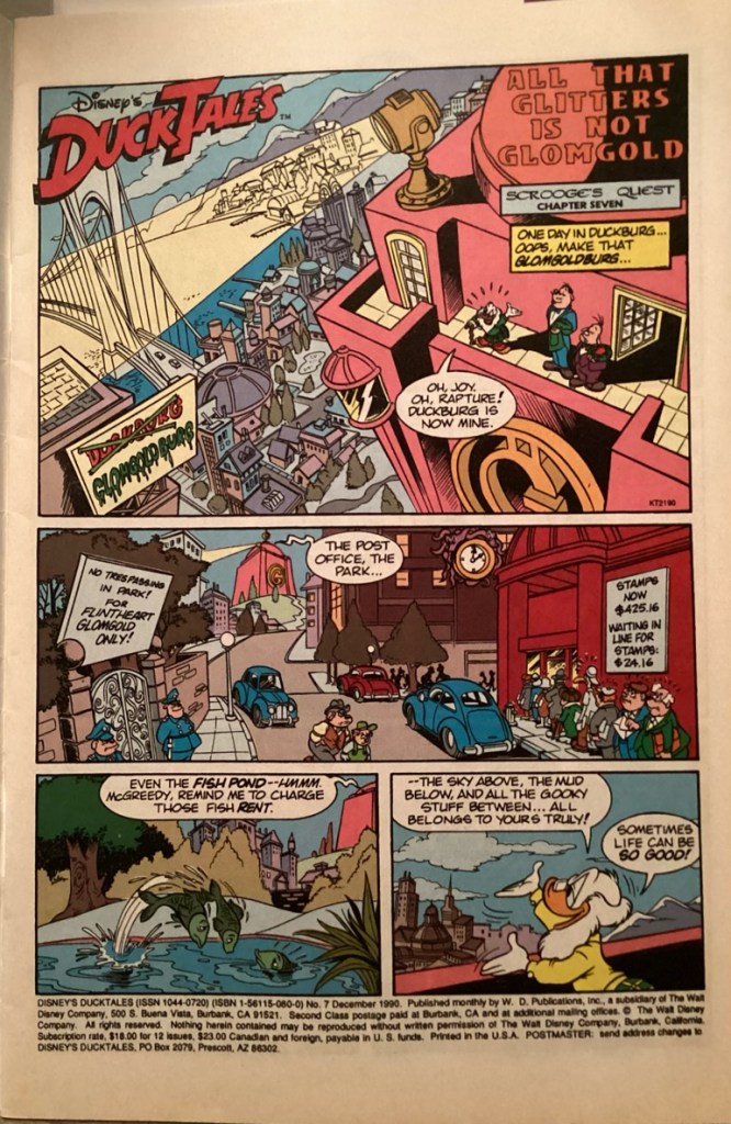 “All That Glitters is not Glomgold” was first published in the US within the book, DuckTales 7 in December of 1990. “All That Glitters is not Glomgold” is 26 pages long.