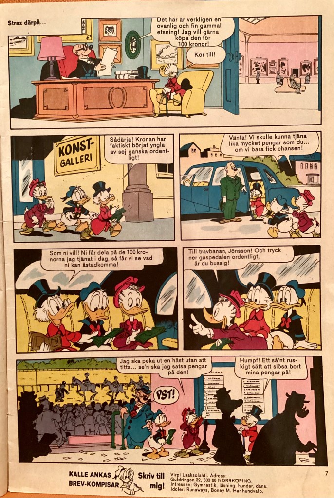 Below are images of the first printing of, “The Road to Riches” from within, Kalle Anka & C:o 40 (Oct 1978)