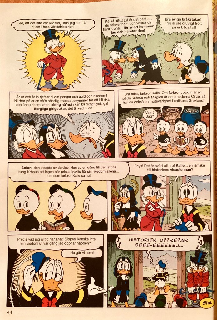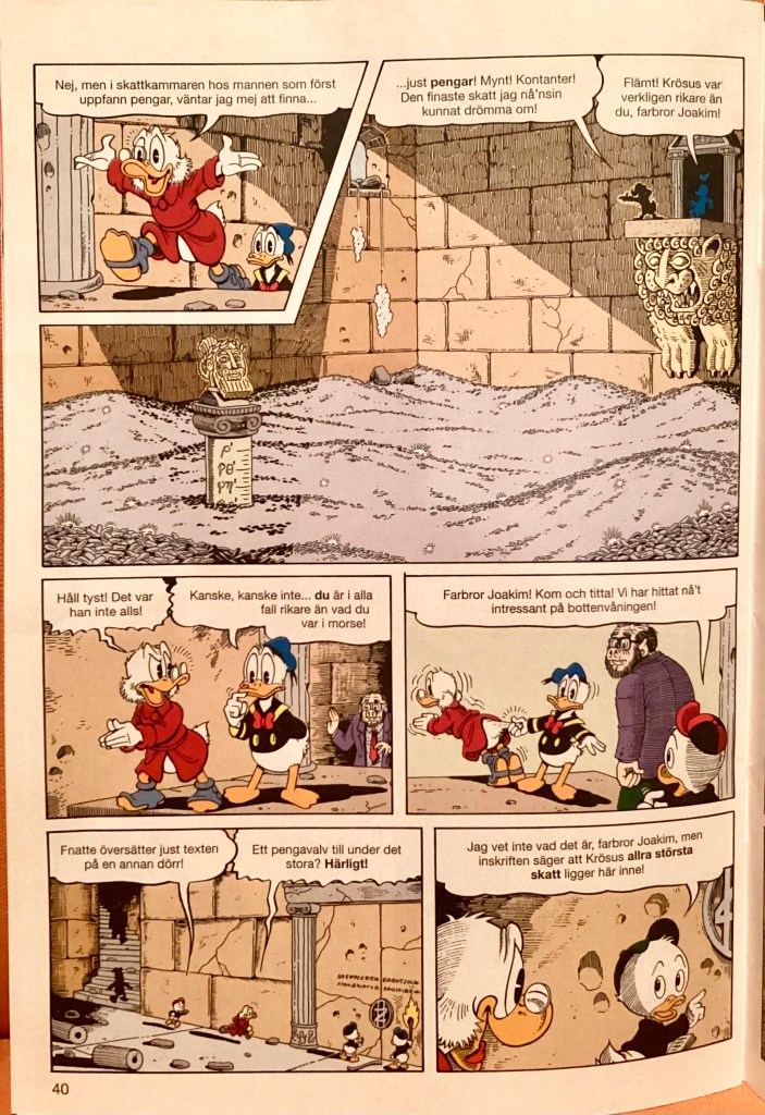 Below are images from the first printing of, “The Treasury of Croesus” Part 3 from within Swedish book. Kalle Anka & C:o #3 (Jan 1995)
