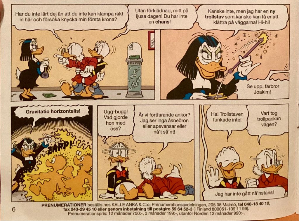 “A Matter of Some Gravity” is a 16-page story that was first published within the Swedish book, Kalle Anka & C:o. 32 on August 2, 1996. “A Matter of Some Gravity“ was first published in the US in March of 1997 within, Walt Disney’s Comics and Stories 610.
