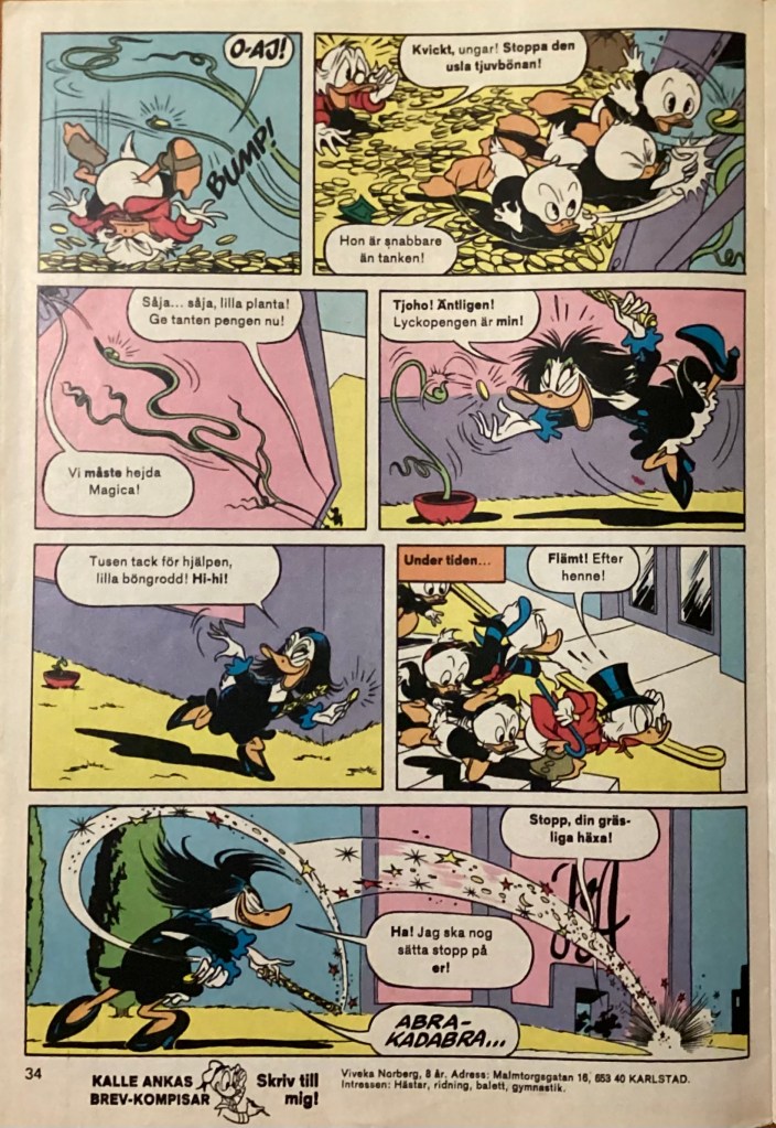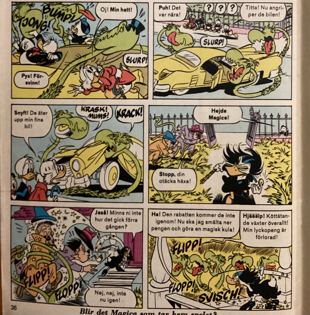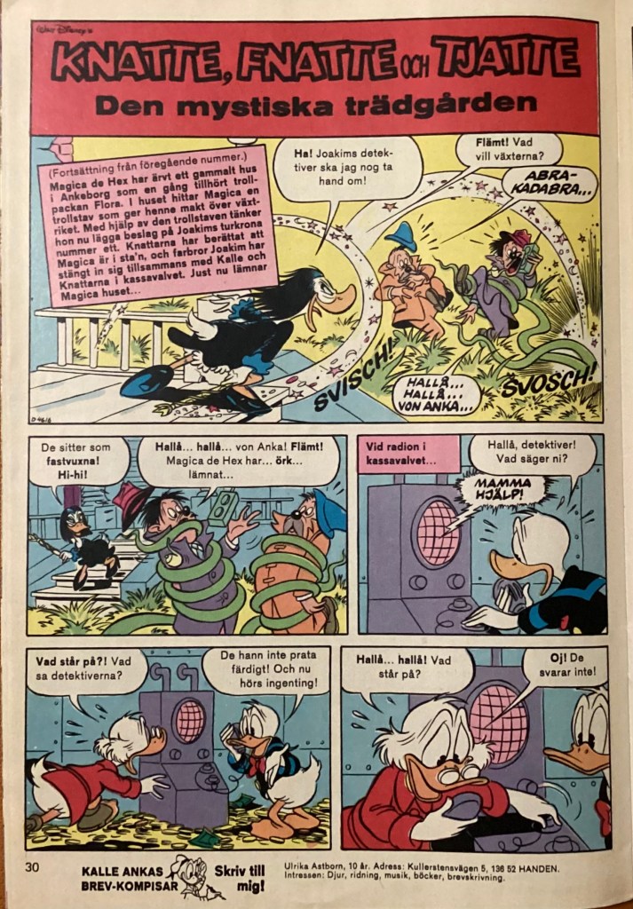“Den Mystiska Trädgården” was produced in October of 1978 and was originally titled, “The Mysterious Garden.” The story was first published in 3 parts within the Swedish book, Kalle Anka & C:o. in October 1979.