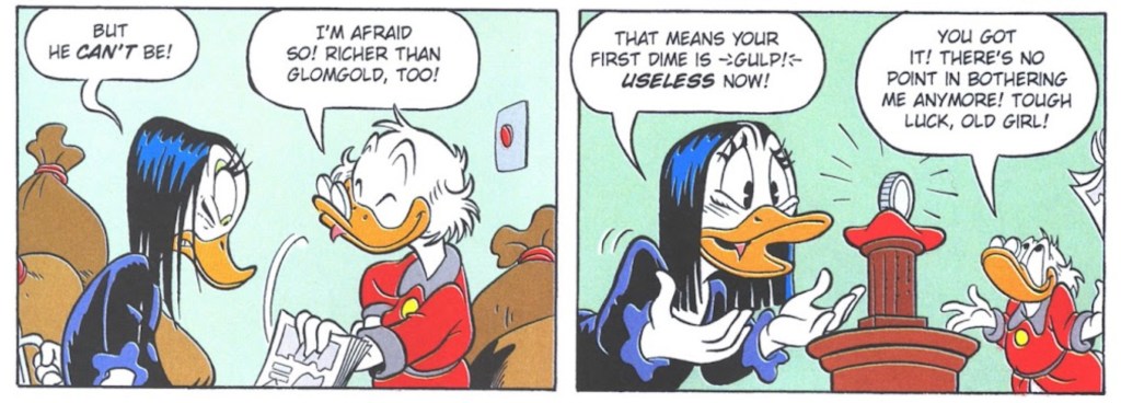 Below are images from the first US release of “The Richest Tycoon In The World” from Uncle Scrooge 376 Apr 2008