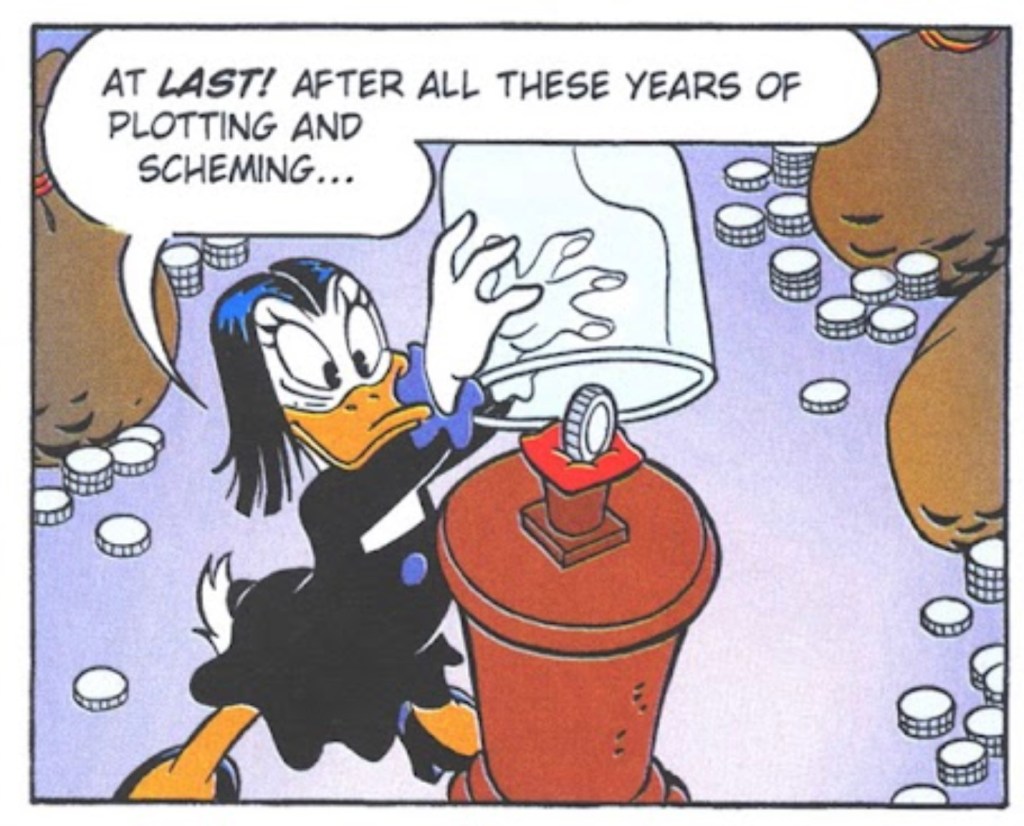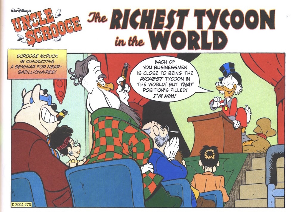 “The Richest Tycoon In The World“ was originally produced in Denmark for Disney’s foreign market. The story was first published in Hungary within, Donald Kacsa Magazin 17 on June 17, 2006 under the title, “Az Iparmágnás”. The story was first published in the US in April of 2008 within, Uncle Scrooge 376. “The Richest Tycoon In The World“ is 12 pages long.