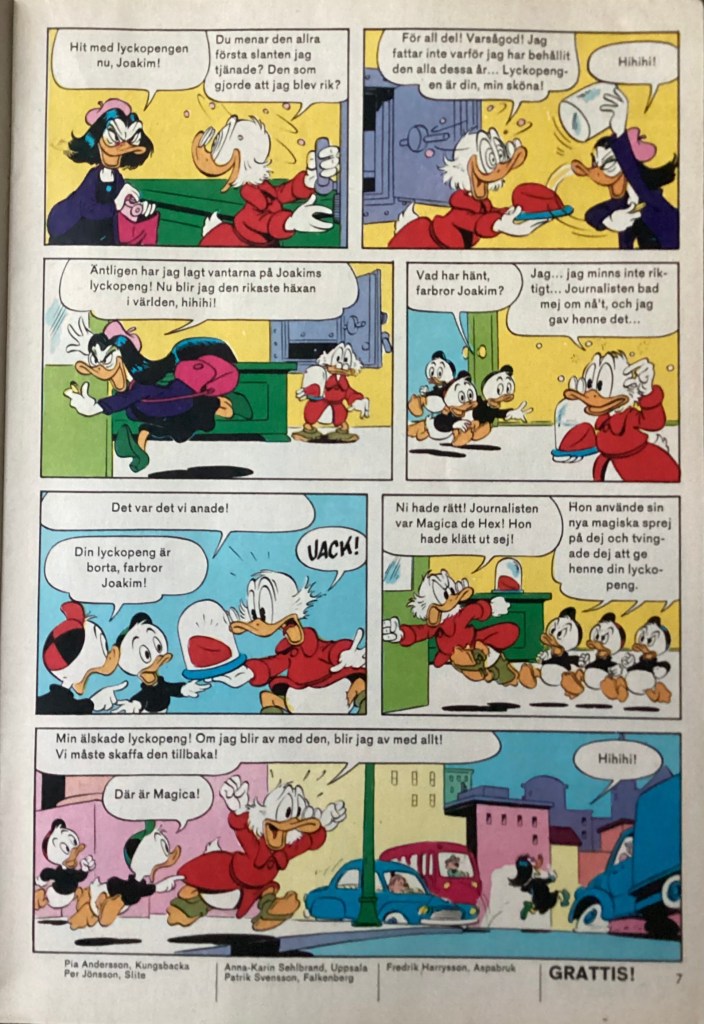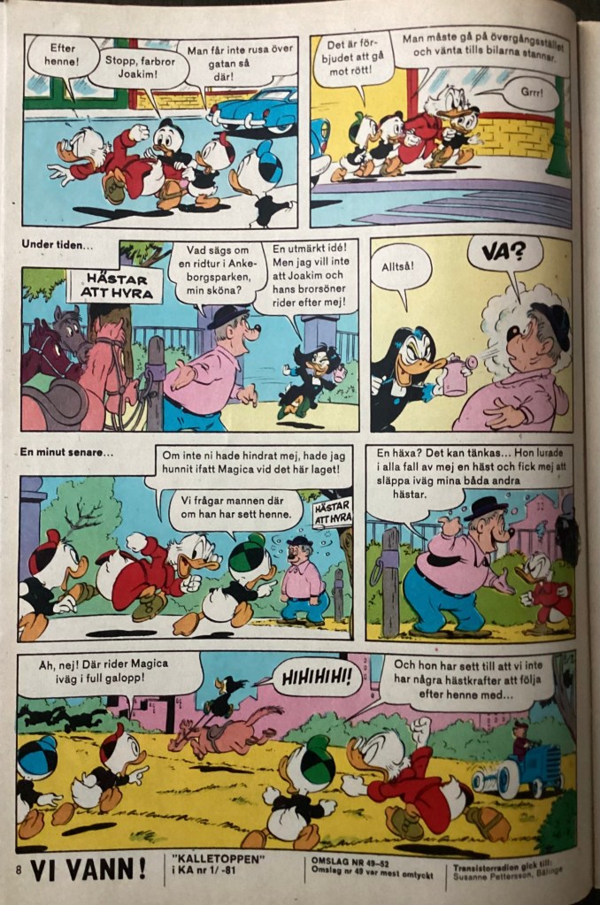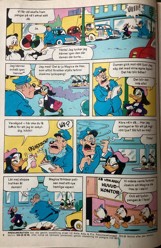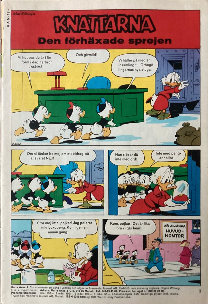 Below are images from the first release of, “The Convincing Spray” from Kalle Anka & C:o 18 (April 1981).