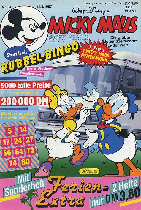 Below are images from the first publication of, “Magica Mouse” from Micky Maus 34 (Aug 1987).