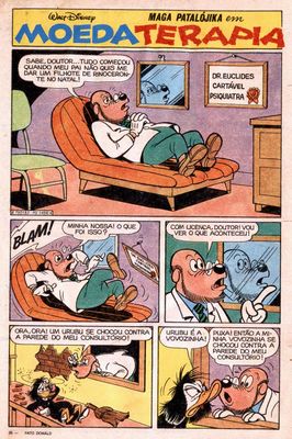 “Moedaterapia” is a 6-page story that was originally produced in Brazil. It was first published within the Brazilian book, O Pato Donald 1498 on July 25, 1980. The story has not been published in the US.