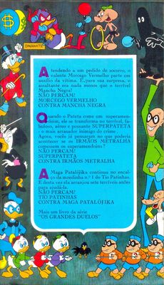 “Tio Patinhas Contra Maga Patalójika” is a 48-page book collecting Uncle Scrooge & Magica’s “greatest duels”. It was first published within the Brazilian book, Coleção “Os Grandes Duelos” 3 on April 15, 1974. The title of the book indicates that it is a collected edition, but since I do not own a copy of the book I do not know which stories are featured within and if they are reprints. “Tio Patinhas Contra Maga Patalójika” has not been published in the US.