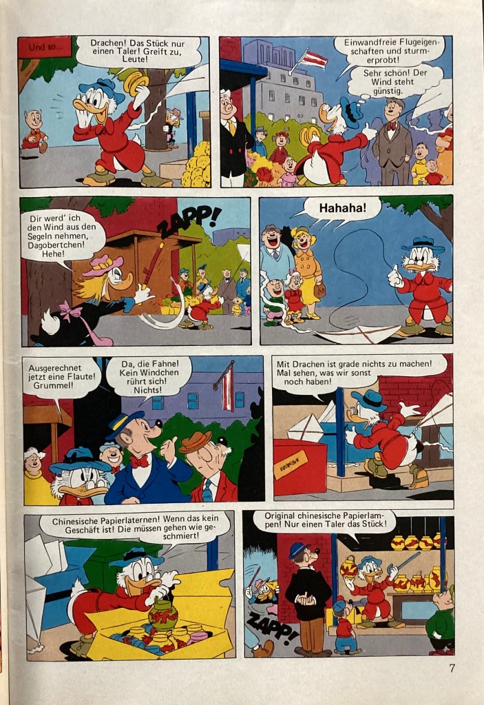 “Der Wettertrick” is a 10-page story that was originally produced on June 16, 1986. It was first published within the German book, Micky Maus 21 in May 14, 1987. The story has not been published in the US.