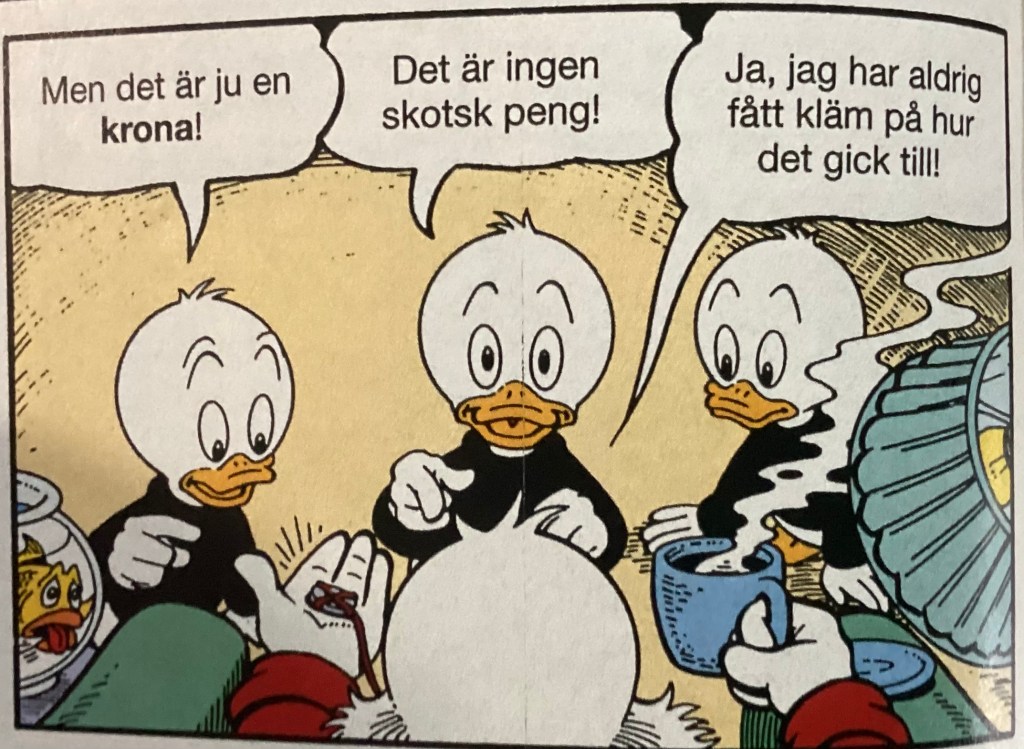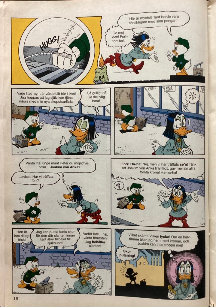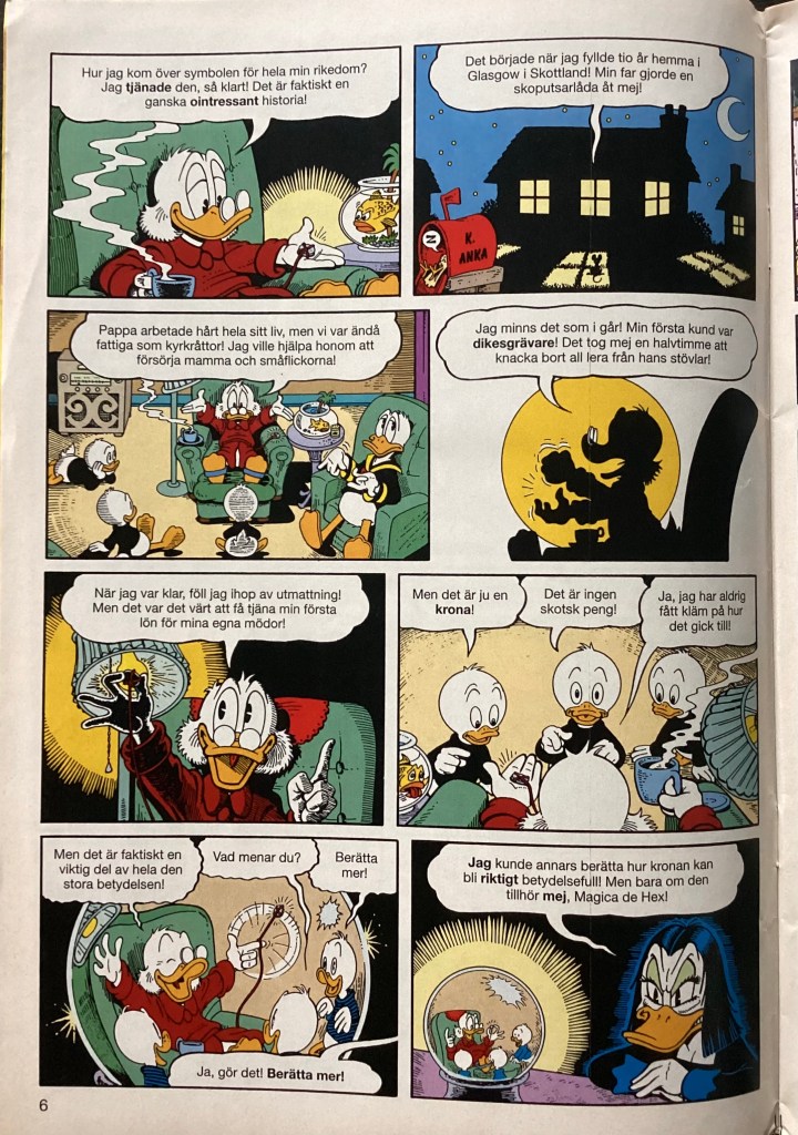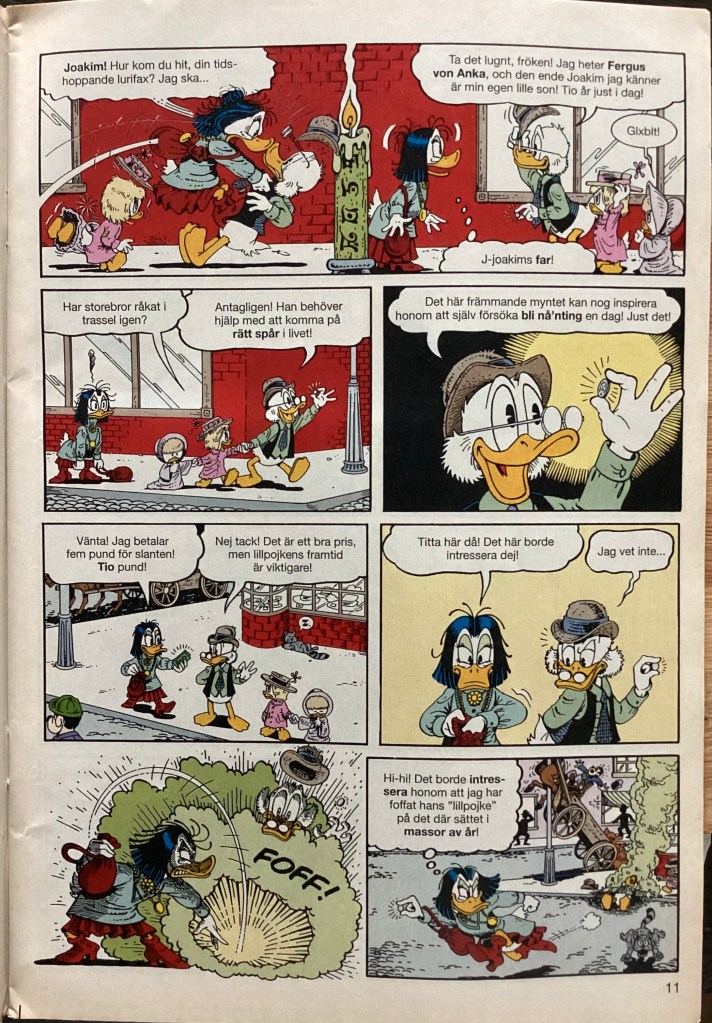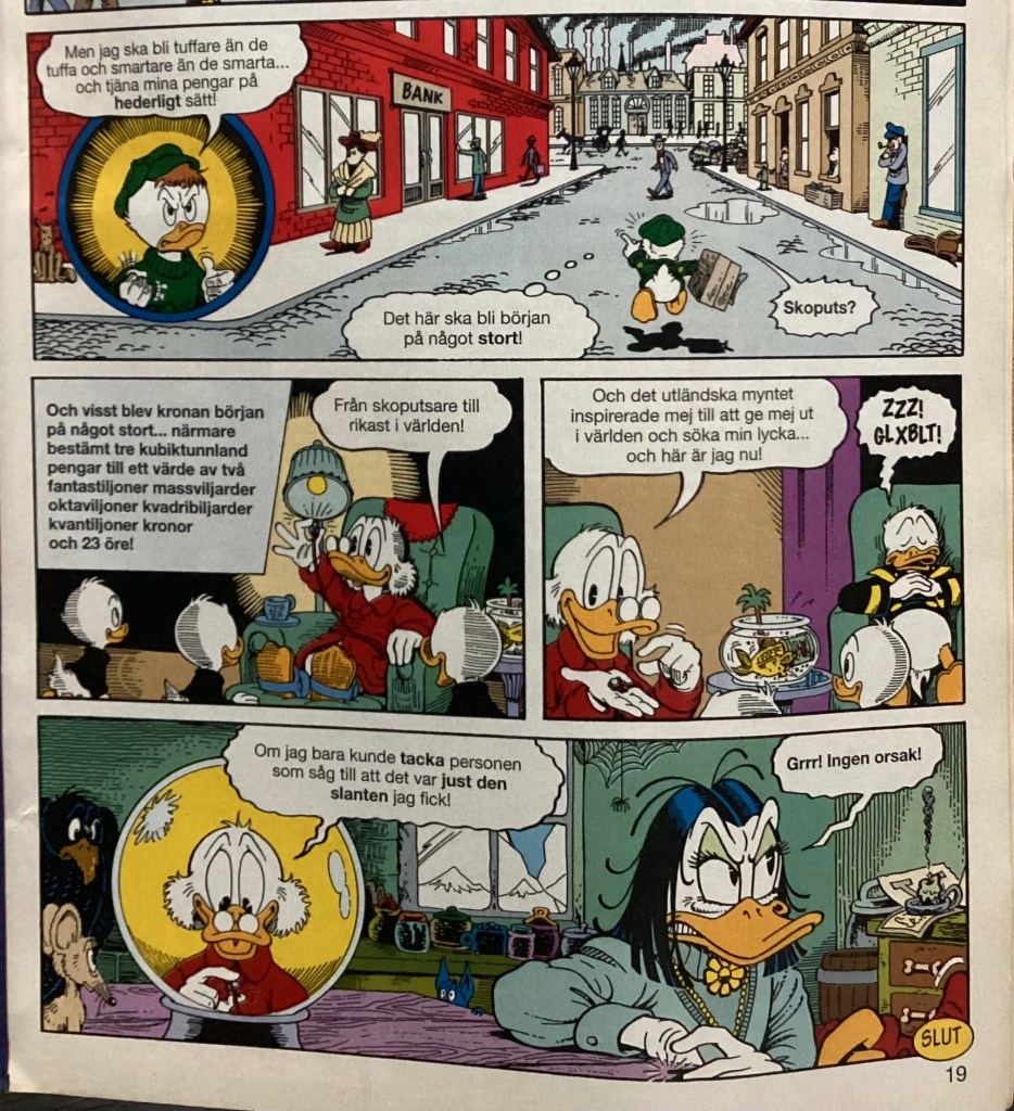 Below are images from the first release of “Of Ducks and Dimes and Destinies” from Kalle Anka & C:o 1995-24 (June 1995)