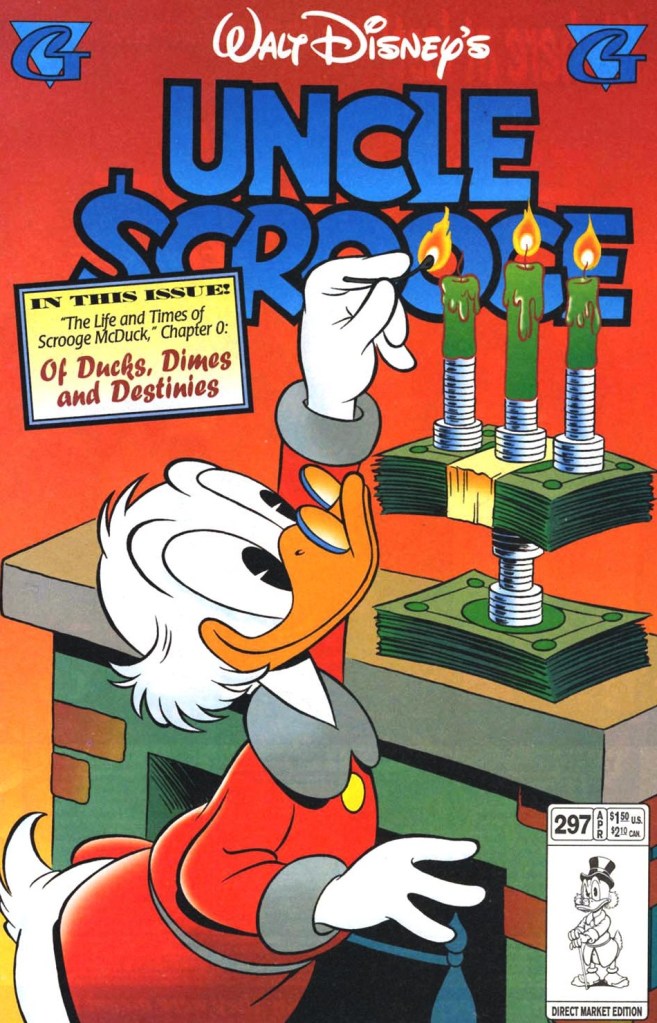 “Of Ducks and Dimes and Destinies” is a 15-page story that was originally produced in Denmark. It featured Scrooge McDuck’s number 1 Dime. The story was first published on June 12, 1995 within the Icelandic & Swedish publications, Andrés Önd & Kalle Anka & C:o, respectively.