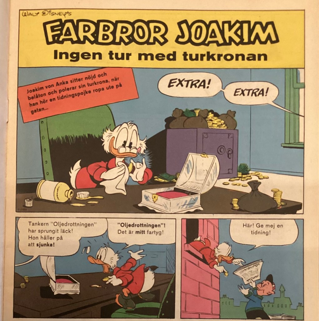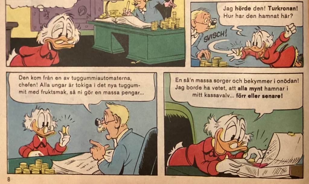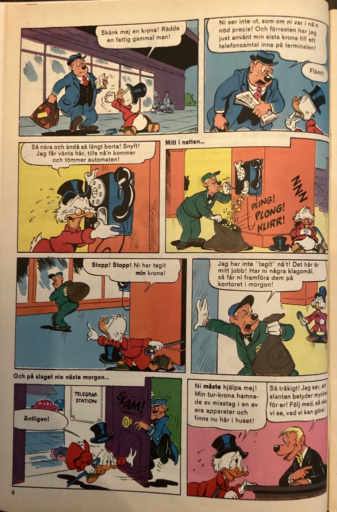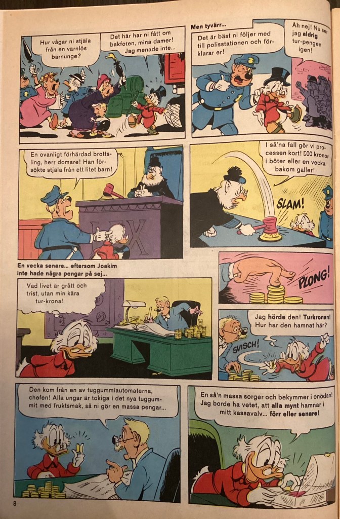 Below are images from the first release of, “The Luckless Lucky Dime” from Kalle Anka & C:o 44 (1973).