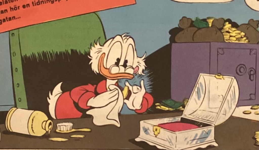“The Luckless Lucky Dime” is a 6-page story that was first published within the Swedish book, Kalle Anka & C:o 44 in November of 1973. The story has not been published in the US.