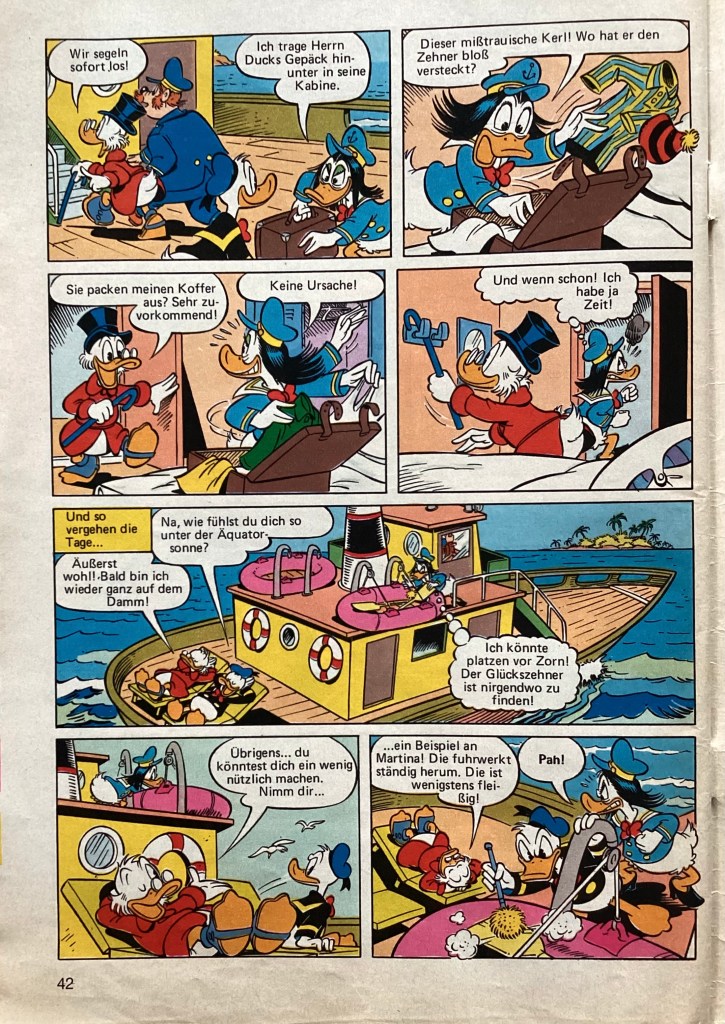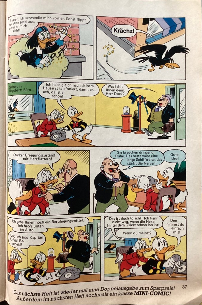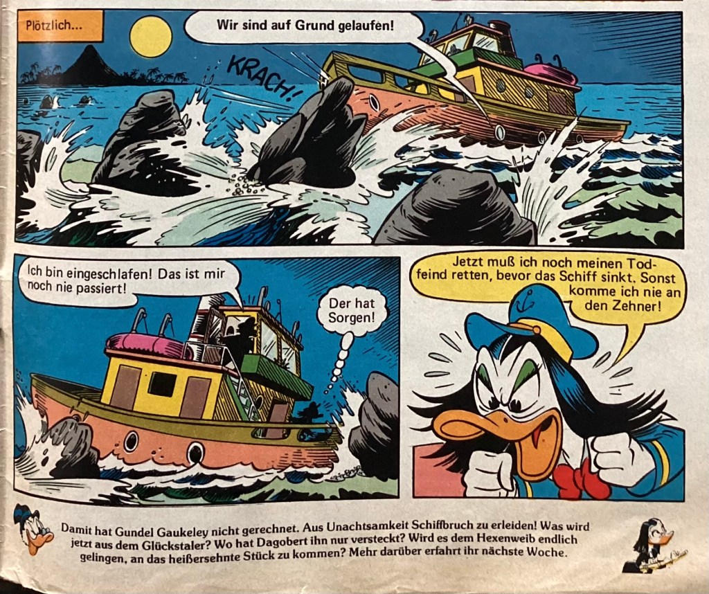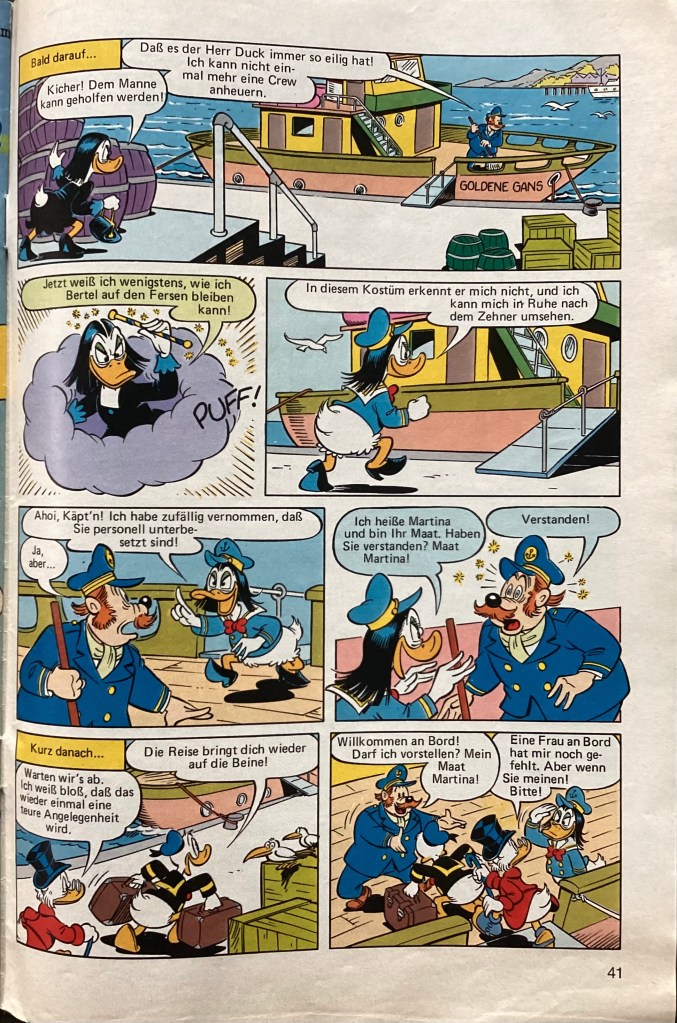 Below are images from the first release of “First Mate Magica, part 1” from Micky Maus 50 (Dec 1988)