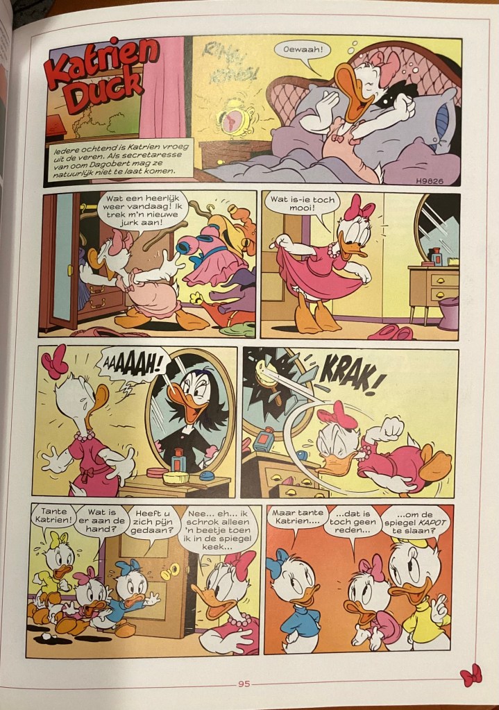 “Spiegel” is a 6-page story that was first published within the Dutch book, Katrien Duck 2 on November 22, 1999. The story has not been reprinted in US.