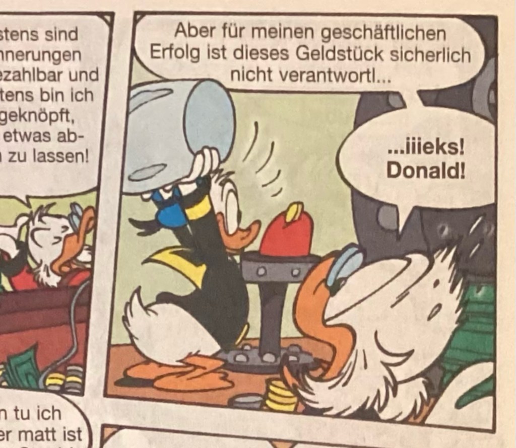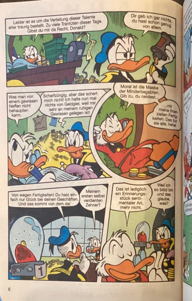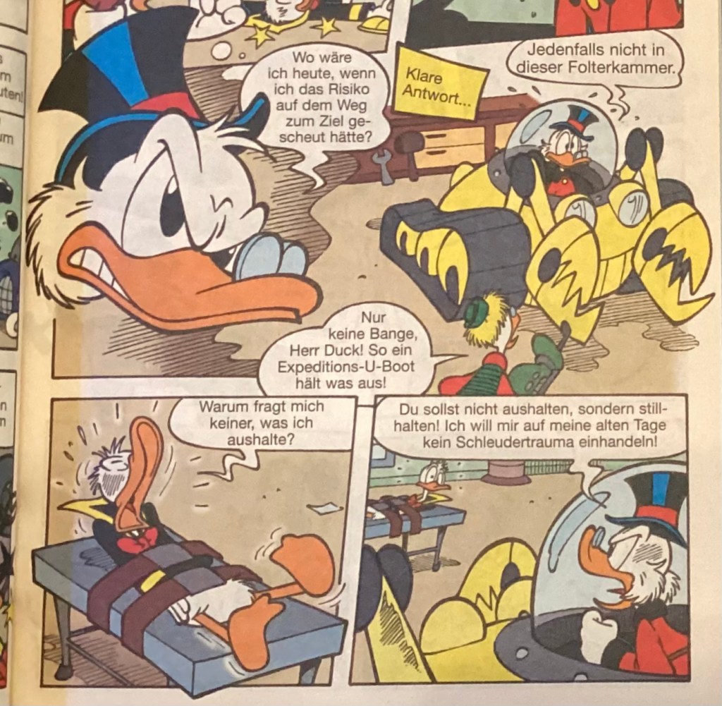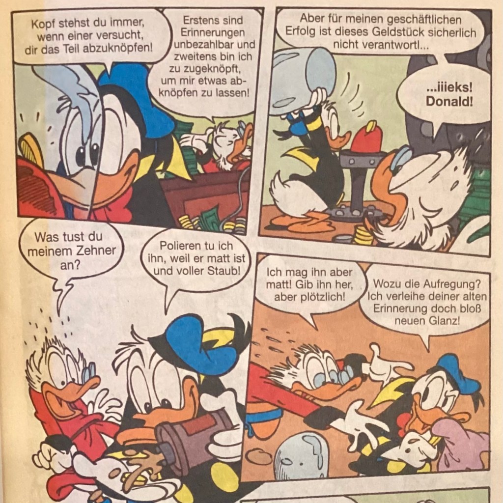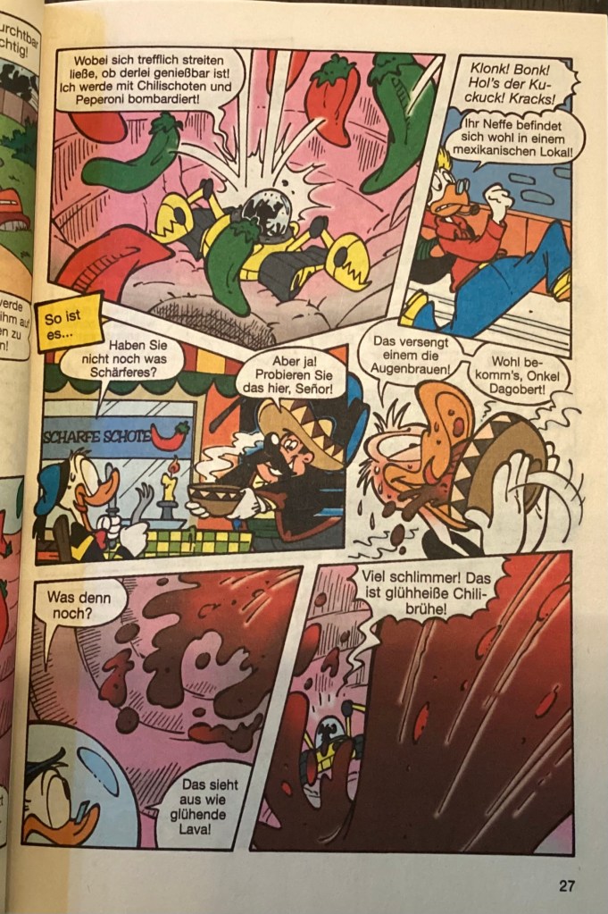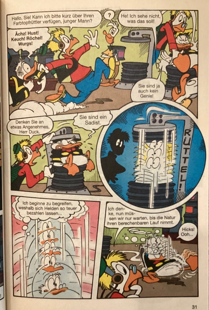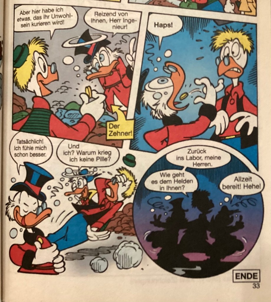 Below are images from the original release of, “Verschluckt!” from Disney 100 Lustiges Taschenbuch 9 (June 2005).
