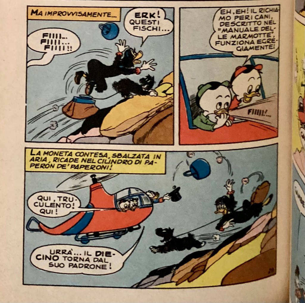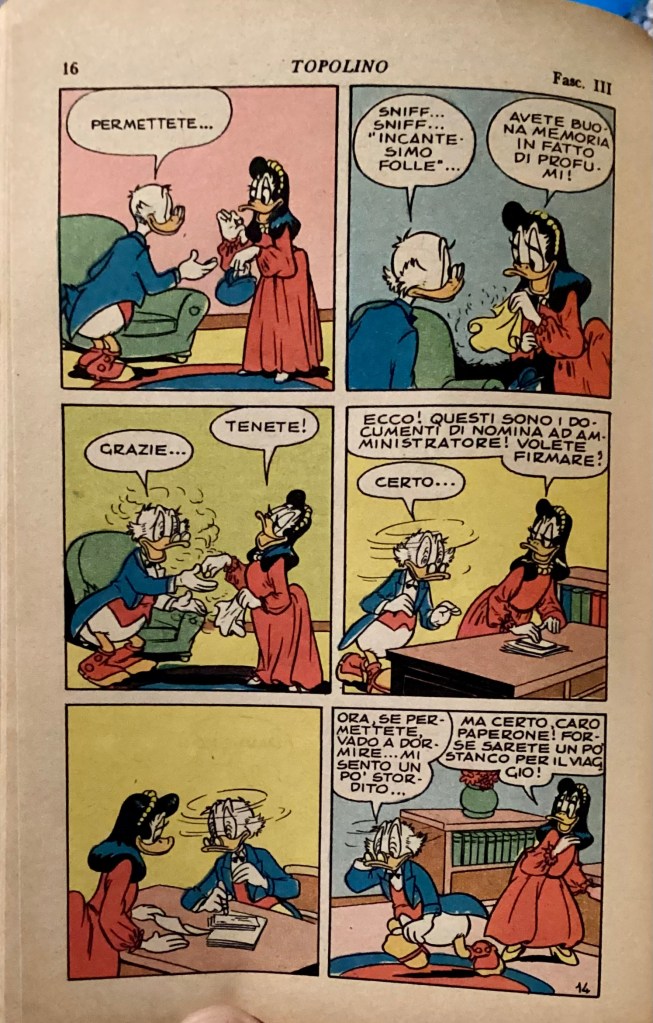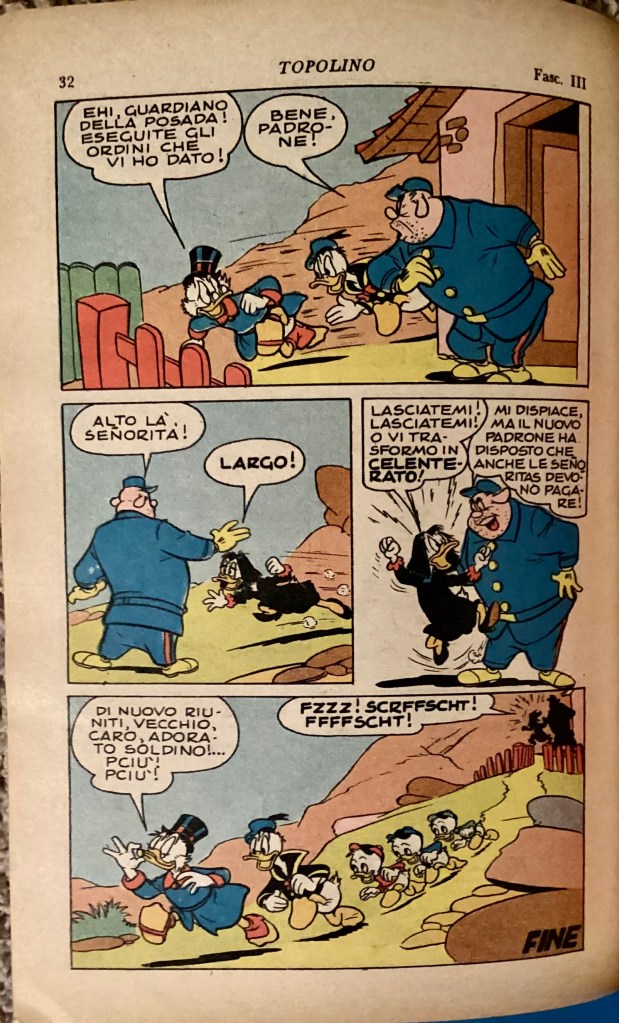 Below are images from the original release of, “Zio Paperone e la contessa Vanessa” from Topolino 411 (Oct 1963).
