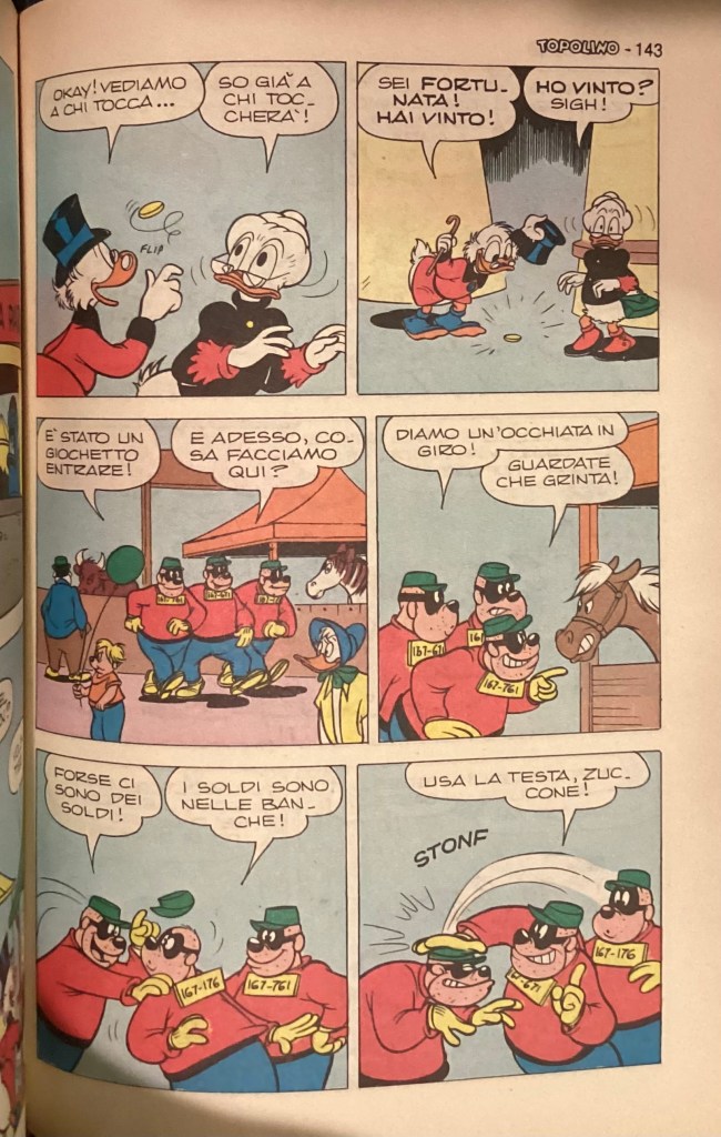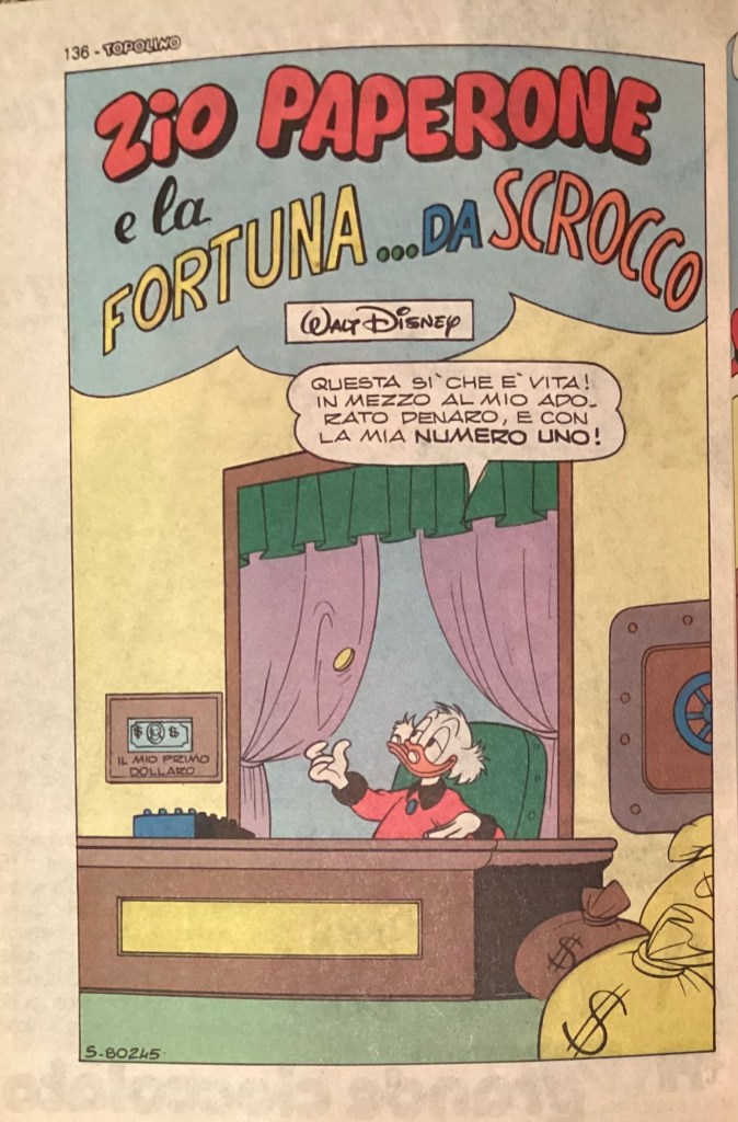 Below are images from the original release of, “Zio Paperone e la fortuna… da scrocco” from Topolino 1403 (Oct 1982).