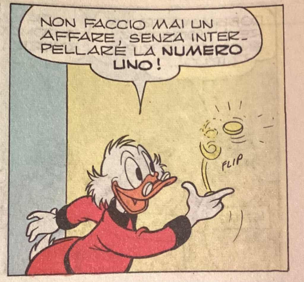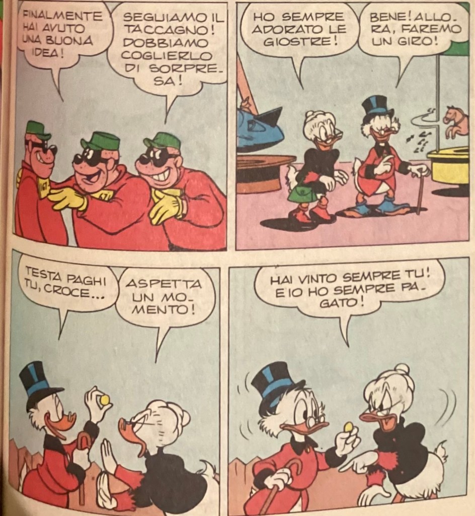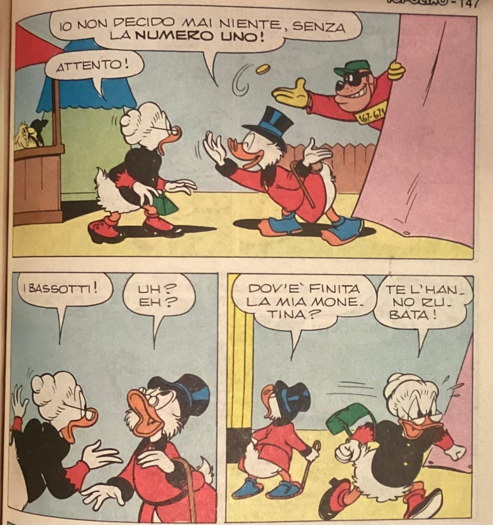 “Zio Paperone e la fortuna… da scrocco” – English title, “Uncle Scrooge Without A Dime”